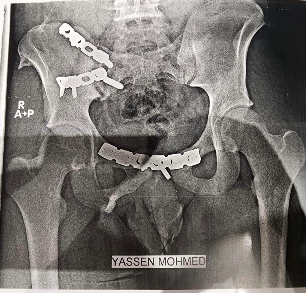 ياسين محمد أمين العمر:١٧ عامًا اصيب بكسر غير ثابت متفتت بالحوض يناير ٢٠٢٣