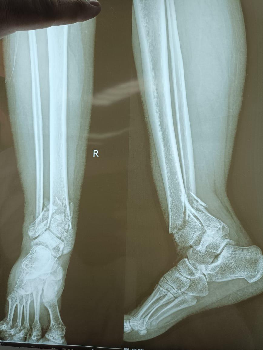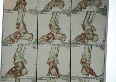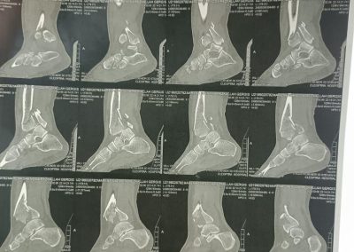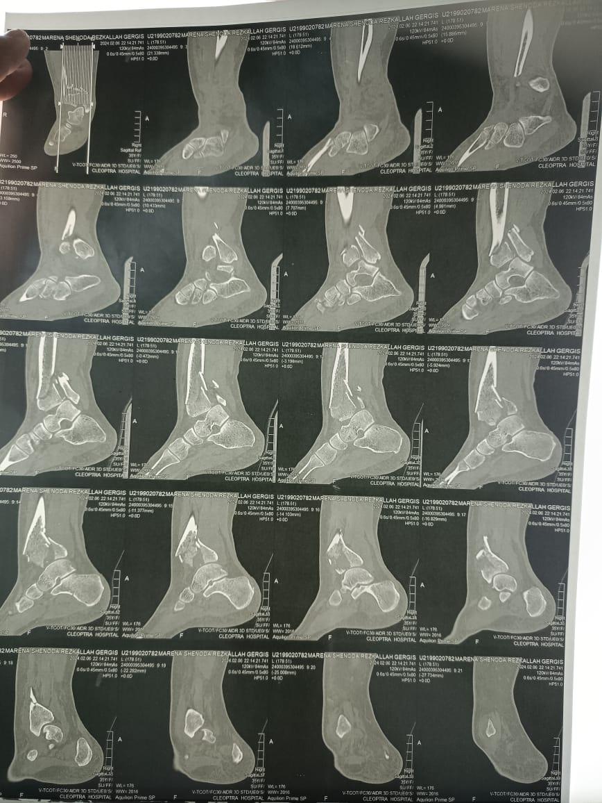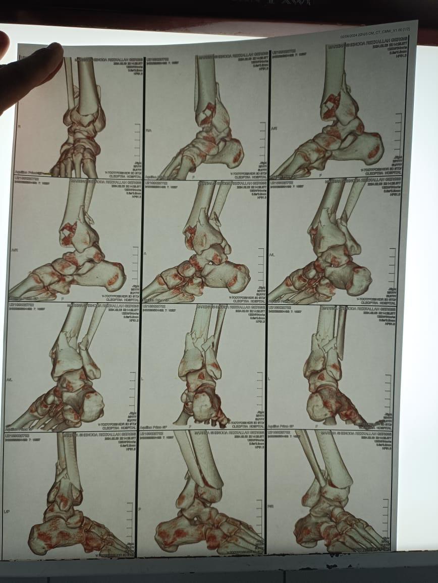 كسر شديد التفتت بالكاحل كما تبين من الأشعات و الأشعات المقطعية و الاشعه ثلاتية الابعاد.