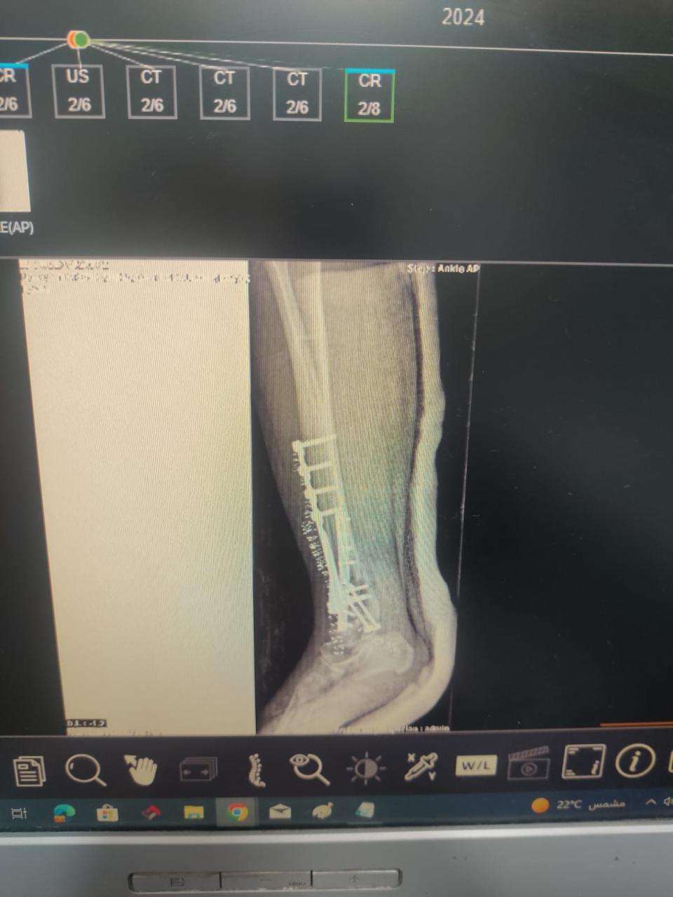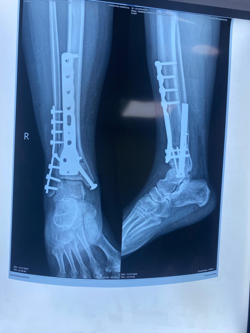 الأشعات بعد الجراحة مباشرة تبين رجوع الكسر الي طبيعته تمامً.