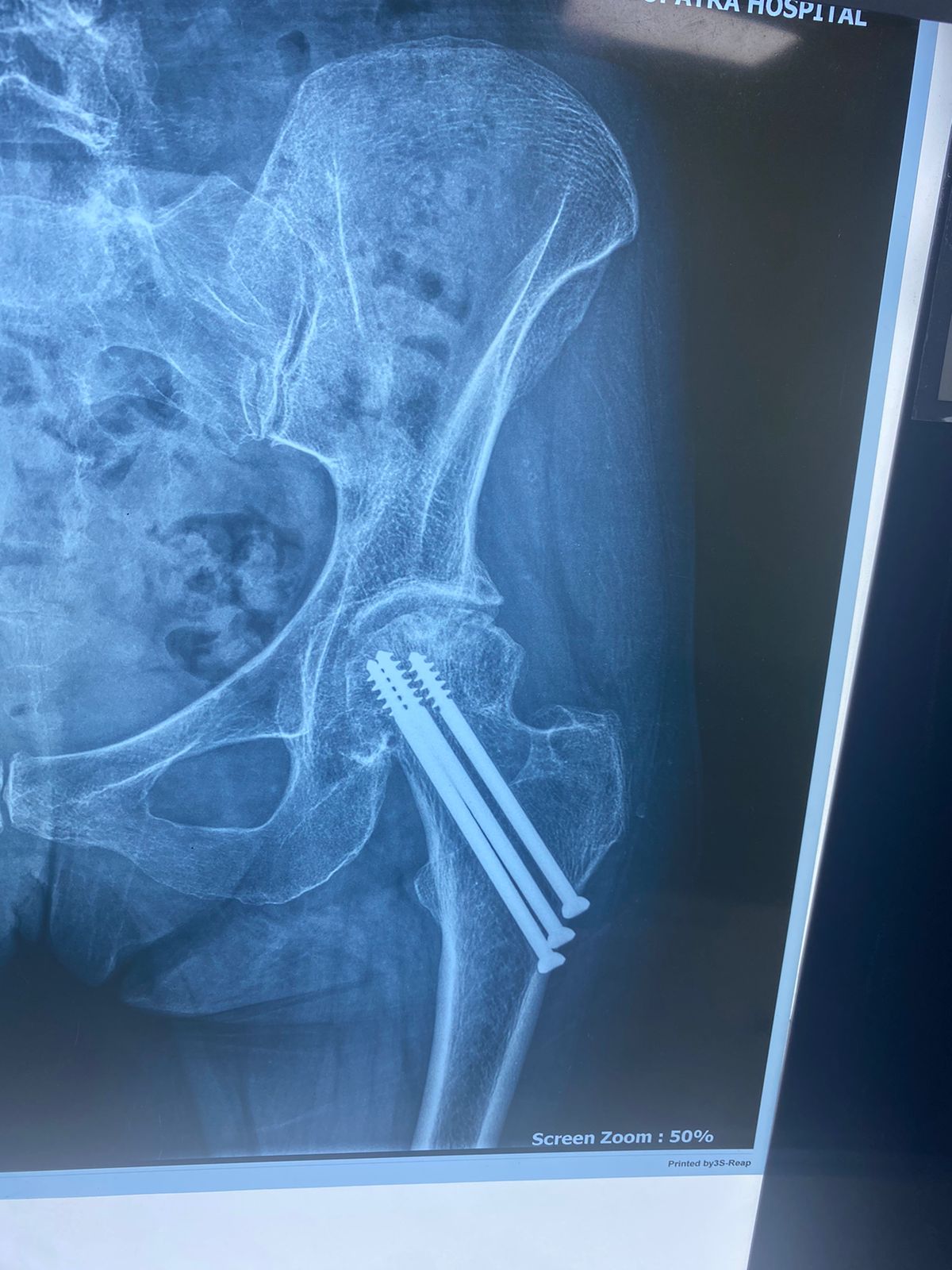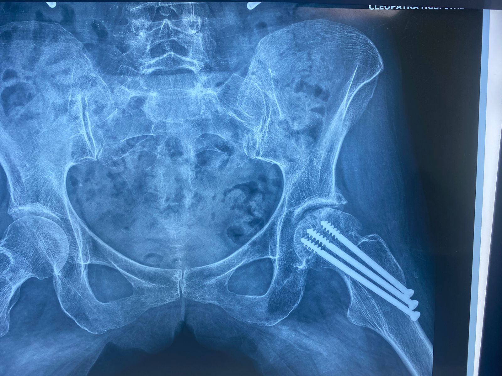 تم إجراء تثبيت داخلي لكسر بالحوض بمسامير عام ٢٠٠٩