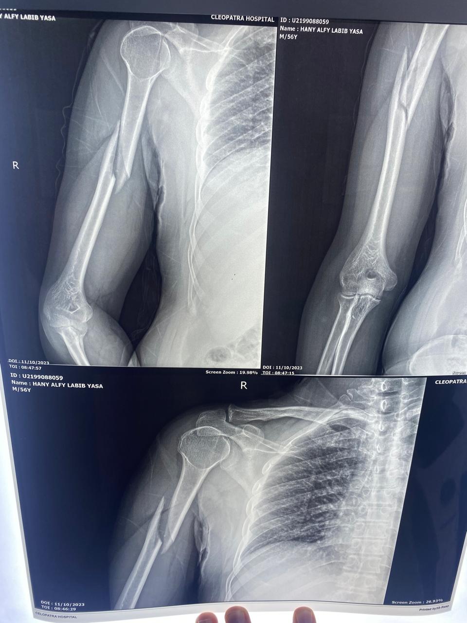 اشعة تبين كسر بالذراع الايمن.